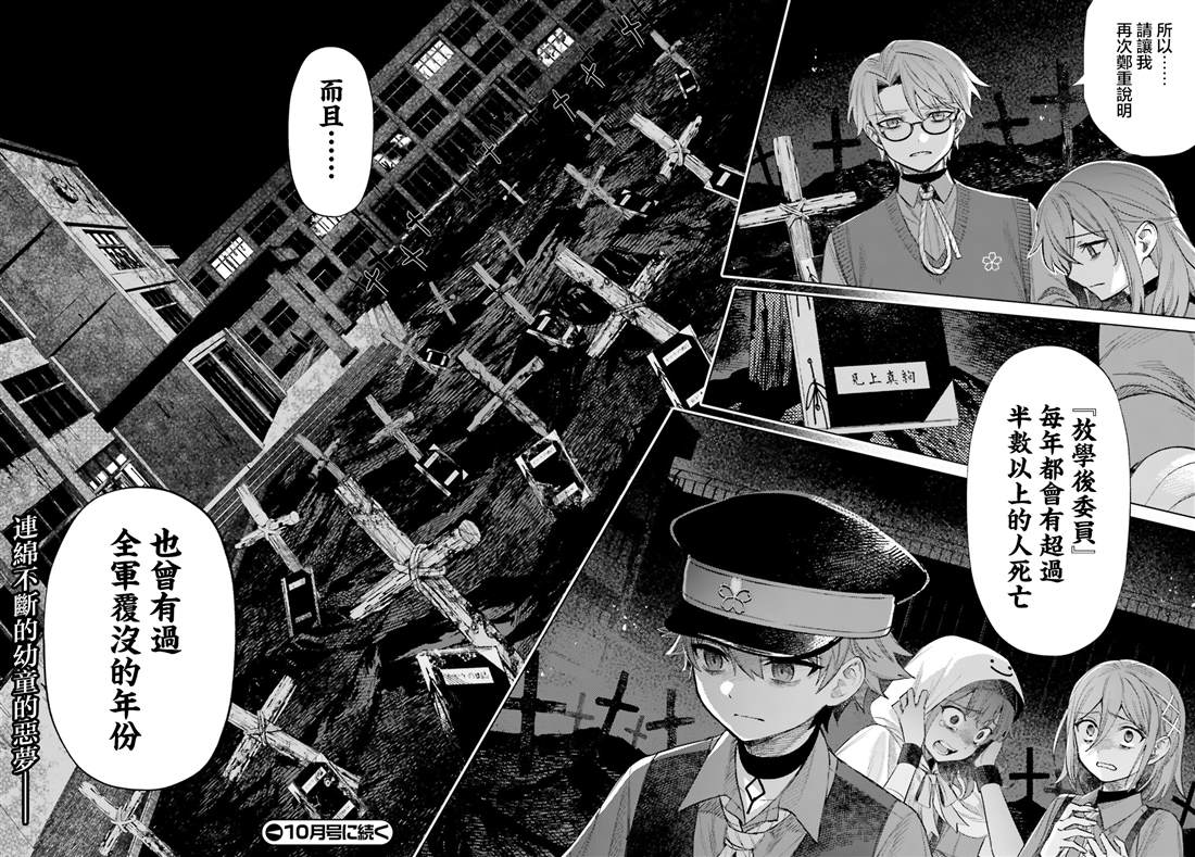小学六年级的二森启某日,在教室的黑板上突然看到自己的名字和神秘的委员名一起被写了下来。那天深夜十二点,在自己的房间里,学校的铃声爆发性地响了起来,打的拉门对面却是被黑暗包围的异次元学校——“放学后”。存在于学校教室里的,被称为“无名的不可思议”的没有名字的异常存在。在放学后被叫出来的六名少年少女,[],为了观察各自负责的怪物并记录其真实身份而被召集起来。擅长画画的启为了捕捉潜藏在屋顶上的怪异“红通通先生”,拿起了笔……。鬼才·甲田学人所创作的被恐惧和绝望支配的《深夜童话》[-折叠]